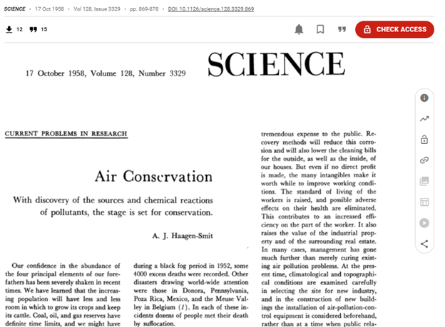 In the early 1950s, Caltech scientist Dr. Arie Jan Haagen-Smit first identified the cause of smog through experiments: chemicals from car exhaust and industrial smoke (hydrocarbons and nitrogen oxides) react in sunlight to produce smog.